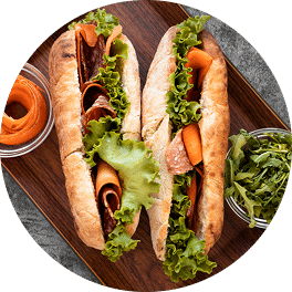 Made with our steamed Siddu bread. Imported cheeses. Exotic salad mixes. No, really. We invented them.